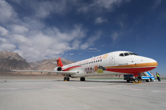 7月2日,一架身披成都航空航����� �������Ƴ������������ �������Ƴ������������ �������Ƴ������������ �������Ƴ�������徽“太阳神鸟”涂装的ARJ21飞����� �������Ƴ������������ �������Ƴ������������ �������Ƴ������������ �������Ƴ�������机从喀什徕宁国际机场起飞前往塔什����� �������Ƴ������������ �������Ƴ������������ �������Ƴ������������ �������Ƴ�������库尔干塔吉克自治县(简称“塔县”)����� �������Ƴ������������ �������Ƴ������������ �������Ƴ������������ �������Ƴ�������红其拉甫机场,ARJ21飞机����� �������Ƴ������������ �������Ƴ������������ �������Ƴ������������ �������Ƴ�������首条高高原航线——喀什=塔什库����� �������Ƴ������������ �������Ƴ������������ �������Ƴ������������ �������Ƴ�������尔干航线成功开航。该定期航班的开通,意味着����� �������Ƴ����������� �������Ƴ������������ �������Ƴ������������ �������Ƴ�������ARJ21飞机在新疆拉开高高原运行序����� �������Ƴ������������ �������Ƴ������������ �������Ƴ������������ �������Ƴ�������幕,标志着我国高高原航线上第一次有����� �������Ƴ������������ �������Ƴ������������ �������Ƴ����������� �������Ƴ�������了国产飞机的身影。