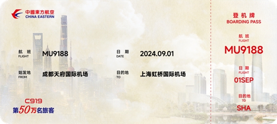 “祝贺您幸运地成为国产大����� �������Ƴ������������ �������Ƴ������������ �������Ƴ������������ �������Ƴ�������飞机C919第50万名旅����� �������Ƴ������������ �������Ƴ������������ �������Ƴ������������ �������Ƴ�������客!”9月1日,MU9188“成都����� �������Ƴ����������� �������Ƴ������������ �������Ƴ������������ �������Ƴ�������天府-上海虹桥”航班上,旅客����� �������Ƴ����������� �������Ƴ������������ �������Ƴ������������ �������Ƴ�������陆先生收获了这份独具价值的惊喜与祝����� �������Ƴ������������ �������Ƴ������������ �������Ƴ������������ �������Ƴ�������贺。